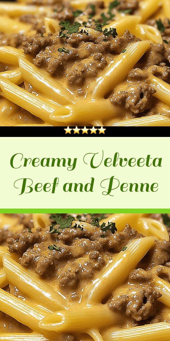 creamy beef and penne, Velveeta pasta recipe, easy ground beef dinner, cheesy pasta bake, family comfort food