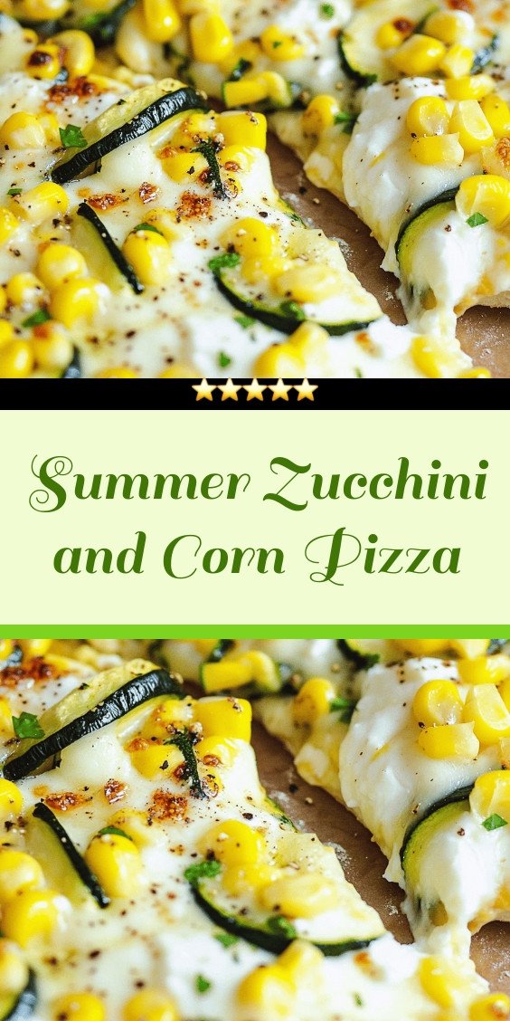 A vibrant summer pizza with fresh zucchini, sweet corn, and creamy mozzarella on a golden crust. A delicious and easy seasonal dinner idea! summer pizza recipe, zucchini corn pizza, easy vegetarian pizza, seasonal summer dinner, fresh corn pizza